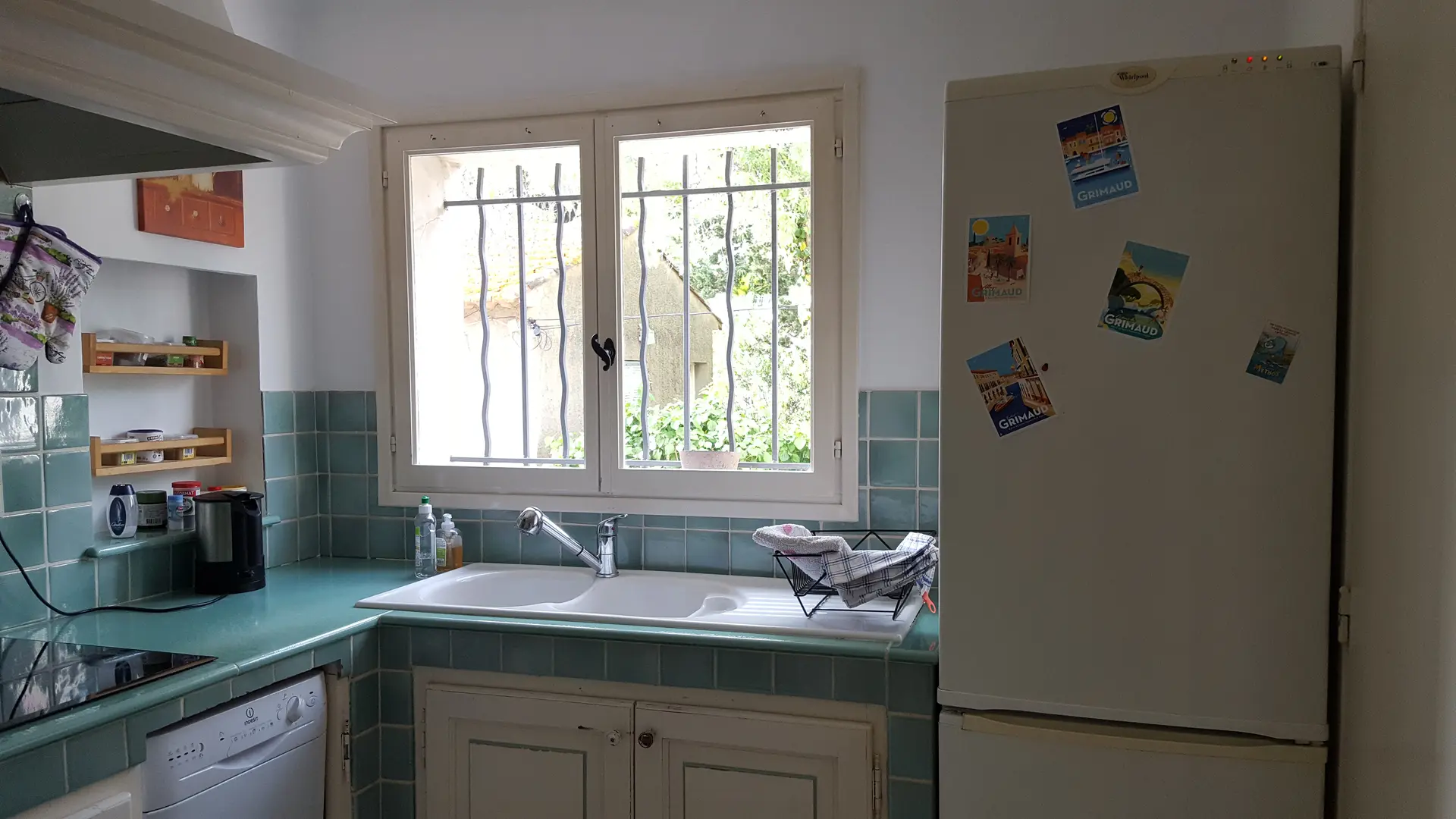 Wohnzimmer, ausgestattete Küche, Mikrowelle, Geschirrspüler, Waschmaschine.